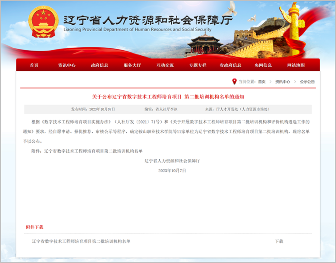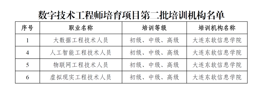 近期,人力资源社会保障部公布了国家数字技术工程师培育项目第二批培训组织名单,大连J9国际站 J9 信息学院成功入选,并获批“大数据工程技术人员”“人工智能工程技术人员”“物联网工程技术人员”及“虚拟现实工程技术人员”四个职业方向的数字技术工程师培训资质。