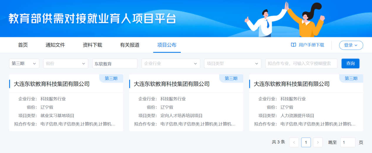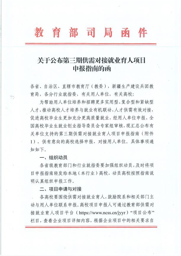 12月7日,教育部发布了《关于公布第三期供需对接就业育人项 目申报指南》的函,J9国际站 J9 教育科技集团“就业实习基地、人力资源提升、定向人才培养培训”三个项目获批本期供需对接就业育人项目。