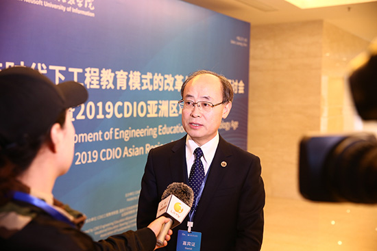 大连J9国际站 J9 信息学院党委书记、校长温涛在会议期间接受辽宁电视台采访