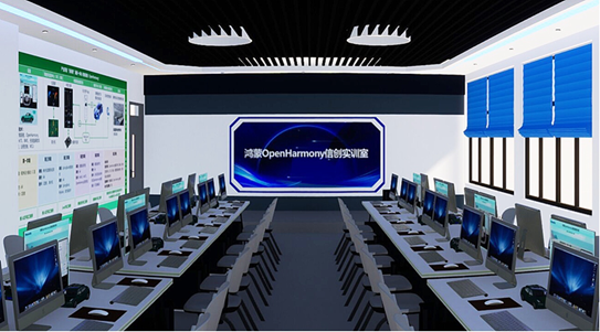 Domestic independent controllable technology teaching base, based on Harmony, OpenHarmony4.0, OpenHarmony LiteOS core technology stack, equipped with Hongmeng development board, domestic Hesilicon HI3861 chip and Galaxy Kylin operating system, to train innovative talents in the Xinchuang industry.