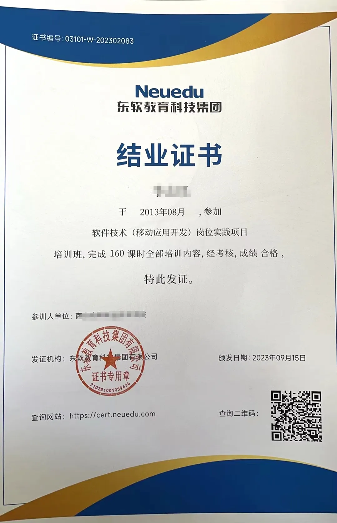 2023年国家级教师企业实践项目结业证书样例