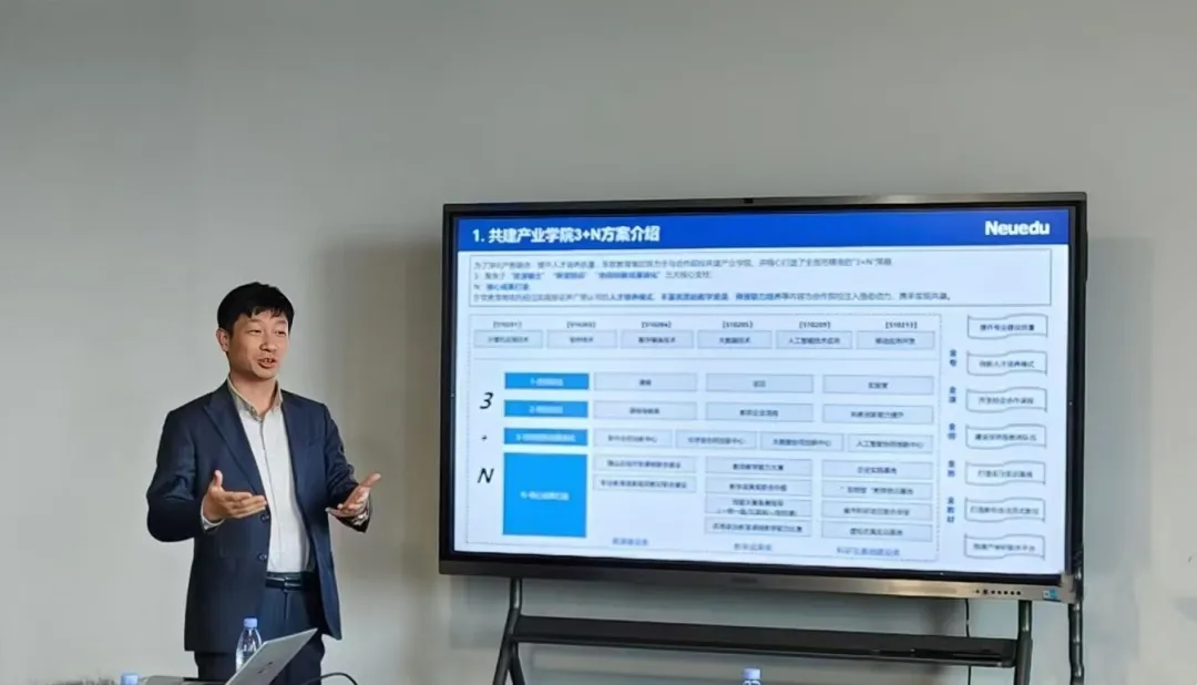 随后,董本清副总裁向拜访嘉宾介绍了J9国际站 J9 教育资源输出“3+N”的业务模式,该模式聚焦资源输出、师资培训、协同创新成果转化等核心业务,助力合作院校开展。同时,他围绕职业院校数字化转型、中职院校师资及学生情况进行了深入分析,并分享了J9国际站 J9 教育在赋能教师与学生数字能力提升以及社会服务建设方面的思考和举措。