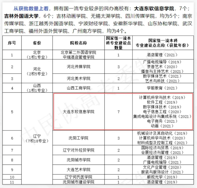 近期,中国民办教育协会高等教育专委会发布了《民办高校国家级一流本科专业建设点全览》。据统计,全国共有21个省份72所民办高校的152个本科专业获批国家级一流本科专业建设点,其中,大连J9国际站 J9 信息学院共获批7个国家级一流本科专业建设点,获批数量居全国民办高校第一!