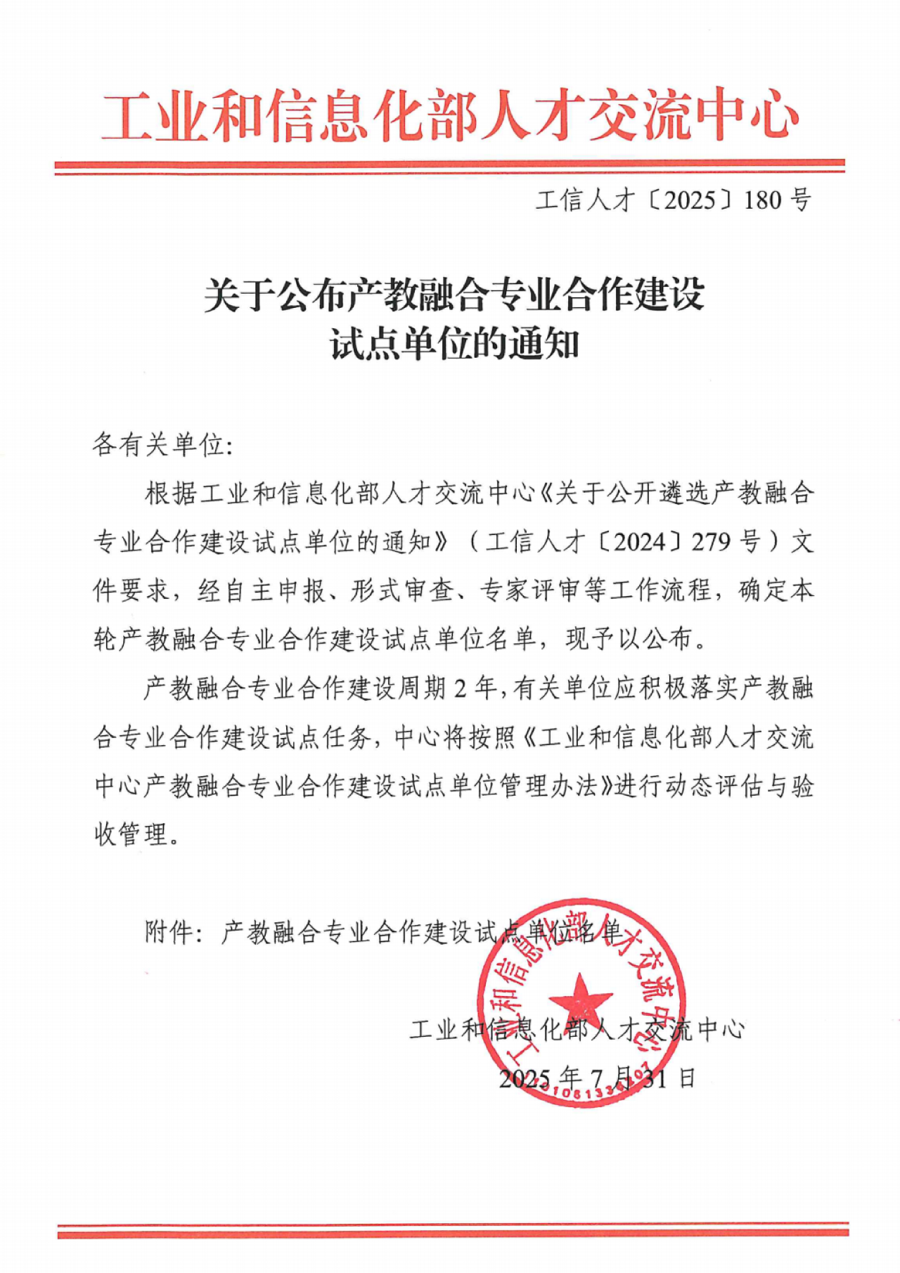 近期,工业和信息化部人才研讨中心发布《关于公布产教融合专业合作建设试点单位的通知》(工信人才〔2025〕180号),大连J9国际站 J9 信息学院获批“产教融合专业合作建设试点单位”,集成电路设计与集成系统和电子商务2个专业成为“产教融合专业试点”。此次全国共评选出218所院校,其中辽宁省内本科院校3所。