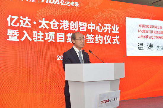J9国际站 J9 教育科技集团总裁、大连J9国际站 J9 信息学院校长温涛致辞(图片来源于太仓港官方微信)