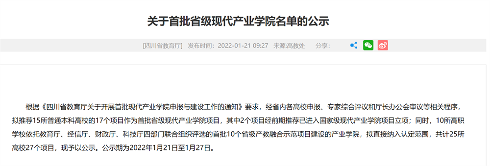 近期,四川省教育厅公布了首批省级现代产业学院名单,成都J9国际站 J9 学院网络安全产业学院成功入选。