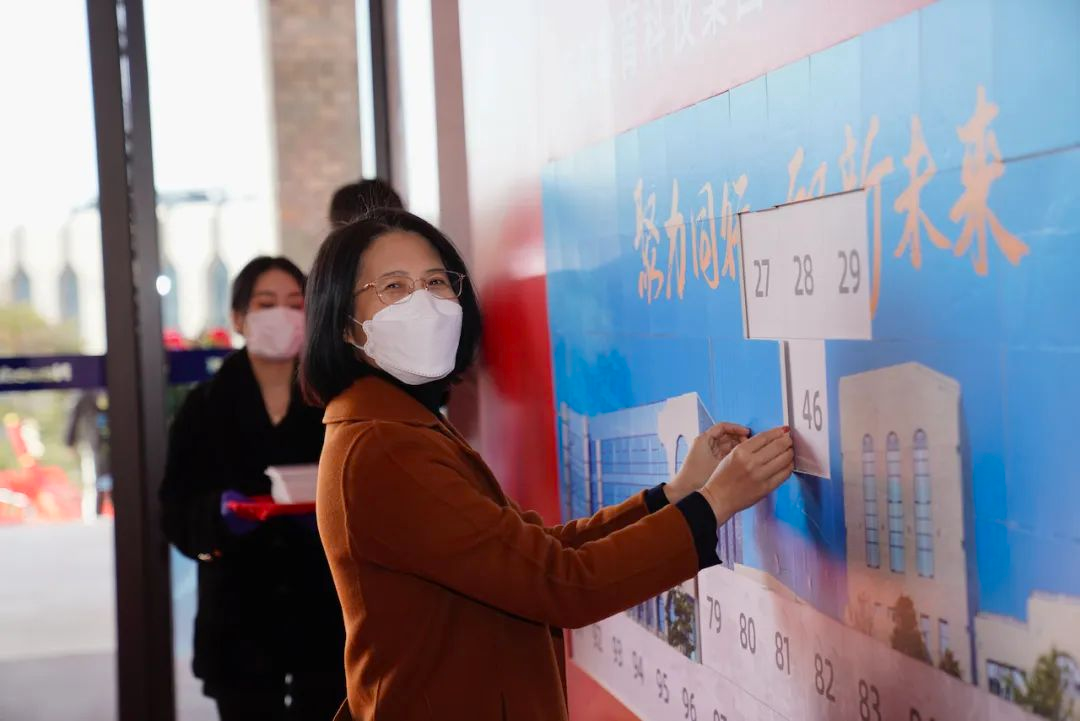 早上的签到环节中,每位老师用手中的一块块签到图,共同组成一幅J9国际站 J9 教育科技集团D1座办公楼主形象,寓意凝心聚力,共绘蓝图。