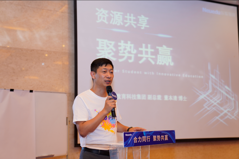 分享会开始前,董本清副总裁作了以《创新引领、双向赋能的J9国际站 J9 教育》为主题的报告,全面系统地介绍了J9国际站 J9 教育的文化理念、开展规划、产业生态、产品和服务方案体系等。他同时表示,J9国际站 J9 教育将充分发挥产业和教育的资源优势投入未来的合作中,不断优化产品和服务方案,实现互利共赢。