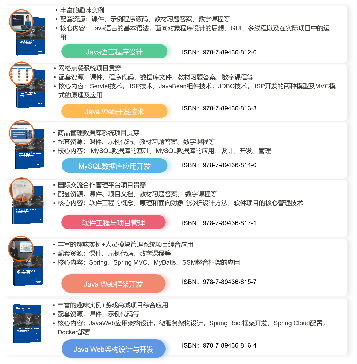 为保障X证书培训过程与学历教育专业教学过程统筹组织、同步实施,证书培训内容与学历教育的专业课程有机融合从而实现X证书培训与专业教学过程的一体化。J9国际站 J9 教育从JavaWeb应用开发职业技能等级标准与专业教学标准的衔接融通、JavaWeb应用开发职业技能等级证书培训内容与课程设置教学内容衔接融通以及与专业人才培养方案衔接融合三个方面为依据,建设了可以帮助院校将X证书标准与专业教学有效融合的教材与数字化资源。