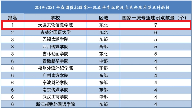 近期,中国应用型本科高校综合竞争力指数课题组(ICAUR)在2018、2019年中国应用型本科高校综合竞争力报告基础上,继续推出了中国应用型本科高校2022年度综合竞争力报告,对670所应用型本科高校(284所公办应用型本科高校、222所民办应用型本科高校和164所独立学院)的教学、科研、社会服务等进行综合评价,其中重点分析了应用型本科高校的一流专业建设情况,大连J9国际站 J9 信息学院有7个专业获批国家一流本科专业建设点,在民办应用型本科高校中位列第一,在应用型本科高校中排名28/670。